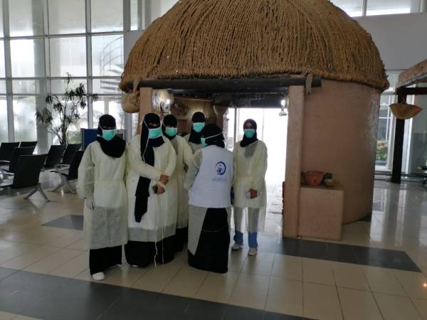 بمشاركة أكثر من 50 متطوعا ومتطوعة وتحت شعار «كلنا مسؤول» نفذت جمعية لمسة إدراك للوقاية الصحية بجازان بالشراكة مع إدارة المنافذ الصحية بجازان وإدارة المطار، مبادرة تعقيم مطار الملك عبدالله بن عبدالعزيز الدولي بجازان للاحتراز من مرض كورونا الجديد، حيث أشرف عليها كل من الدكتور عمرو الخرمي، والدكتور إسماعيل الراجحي، والدكتور محمد أبو عمرين. وأكدت قائدة الفريق الأخصائية النفسية أحلام الشهاري أنه تم تعقيم الصالات الداخلية والخارجية وغرف التفتيش ومناطق الانتظار والجلوس والمسجد وجميع الممرات والصالة الملكية وصالة الـVIP وصالات استراحة موظفي ومنسوبي المطار من صالة ألعاب واستراحة وصالة الطعام وجميع الأقسام والمكاتب الإدارية.