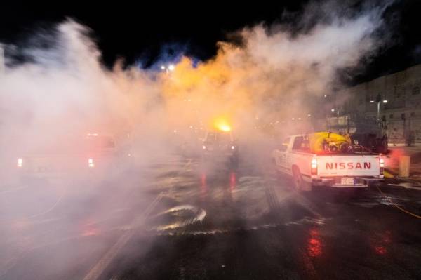 كثفت بلدية محافظة القريات، أمس، جهودها لأعمال التطهير والتعقيم للشوارع والمواقع الحيوية بالمحافظة، استكمالا لإجراءاتها الاحترازية وضمن مبادرة القطاع البلدي للحد من انتشار فيروس "كورونا". جهّزت البلدية عددا من المعدات التي تتناسب مع عملية التعقيم وغسل ورش الشوارع مستفيدة من وقت منع التجوال للقيام بعملية التطهير والتعقيم مستخدمة كوادر مؤهلة. أوضح رئيس البلدية سميحان الشمري أنه إنفاذا لتوجيهات أمير منطقة الجوف الأمير فيصل بن نواف، ومتابعة أمين منطقة الجوف عاطف الشرعان شرعت البلدية من وقت مبكر في تطهير وتعقيم الشوارع والمواقع الحيوية، مؤكدا الالتزام بالاشتراطات ووسائل السلامة، في عملية التطهير والتعقيم التي شملت الشوارع والأرصفة والمحلات بمشاركة 22 معدة وآلية خاصة بعمليات الرش والتعقيم و70عاملا.