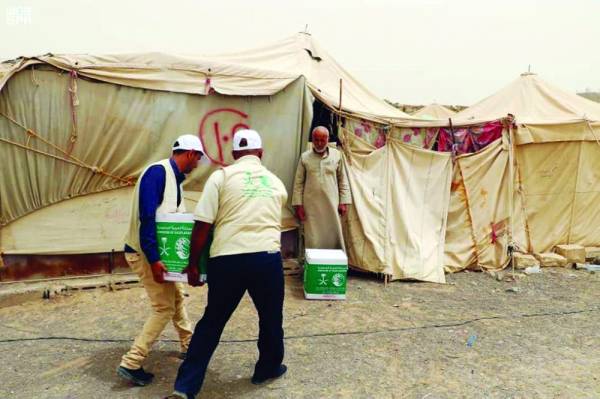 وزع مركز الملك سلمان للإغاثة والأعمال الإنسانية بالتعاون مع ائتلاف الخير للإغاثة الإنسانية أمس، مساعدات غذائية للنازحين من محافظة عمران إلى مدينة مأرب بمحافظة مأرب، شملت 500 سلة غذائية استفاد منها 3,000 فرد.