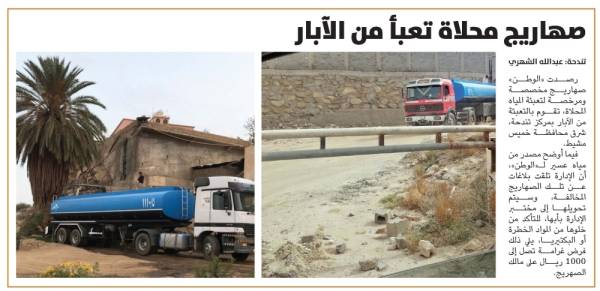 وأضاف المصدر أن قائدي تلك الصهاريج يلجؤون إلى إخفاء مؤقت للرقم الرسمي المدون على الصهريج بملصق، وبعد الخروج من نقطة التعبئة في البئر يزيلون الملصق ويقومون ببيعها كمياه تحلية.