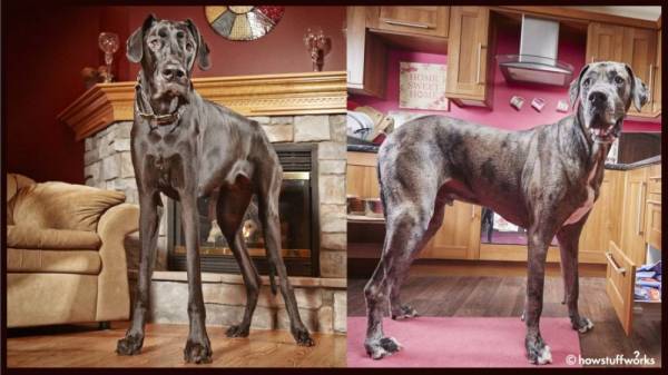 وفقًا لموسوعة جينيس للأرقام القياسية (GWR)، نجد أن أطول الكلاب في العالم هي من السلالة الدنماركية، وقد حافظت هذه السلالة على رقم قياسي لأطول كلب لأكثر من عقدين. وكان أطول كلب على الإطلاق في تاريخ GWR هو الدنماركي الذي يدعى زيوس، يبلغ طوله 3 أقدام و 8 بوصات (1.1 متر)، وقد عاش في الولايات المتحدة وتوفي في عام 2014. وحامل الرقم القياسي الحالي لأطول كلب حي هو الدنماركي فريدي الذي يعيش في إنجلترا. ولكي تكون مؤهلاً للحصول على GWR ، يجب أن يكون عمر الكلب عامًا واحدًا على الأقل وأن تمتلك «شهادة صحية نظيفة» معتمدة من الطبيب البيطري. ولكن لم يعد يقبل بمطالبات الحيوانات الأليفة الأثقل أو الأخف وزنًا، ويرجع ذلك لما قالته مديرة العلاقات العامة في شركة Inc، أماندا ماركوس: «نحن نقدر أن رفاهية الحيوان الأليف ستكون، في معظم الحالات، في طليعة عقل المالك، ومع ذلك، فقد أصبحنا قلقين بشكل متزايد من أنه من المحتمل أن يتم تشجيع المالكين على الإفراط في تغذية حيواناتهم الأليفة أو إهمالها في سعيهم للحصول على الرقم القياسي».