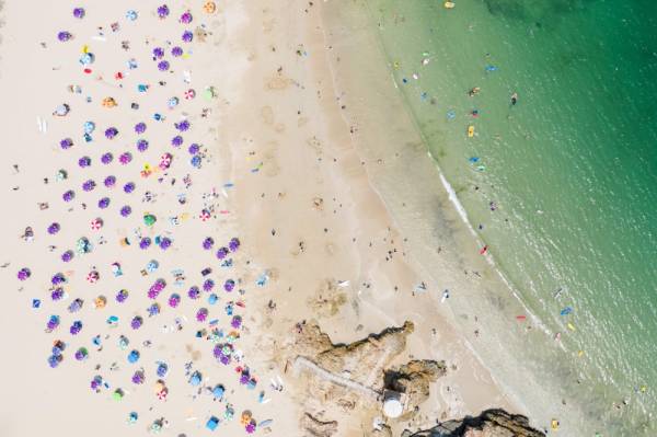 أشخاص يتجمعون على شاطئ هونج كونج، مع الحفاظ على مسافات التباعد الاجتماعي، حيث تحظر الحكومة التجمعات لأكثر من 4 أشخاص. (أ ف ب)
