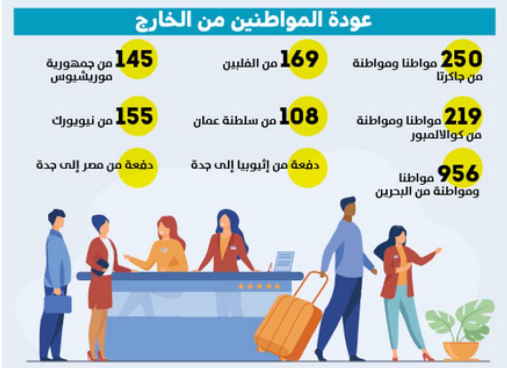 حققت المملكة متمثلةً في وزارة الخارجية نجاحًا منقطع النظير في تنفيذ أمر عودة المواطنين إلى منازلهم سالمين آمنين، فقد أطلقت في الخامس من أبريل منصتها الإلكترونية لمن يرغب من المواطنين العودة إلى الوطن، حيث أتاحت عودة المواطنين وذويهم ومرافقيهم تاركةً الأولوية للبلدان الأكثر تأثرًا بفايروس كورونا ولكبار السن والحالات الإنسانية وذوي الاحتياجات الخاصة وحاملي تذاكر الطيران الملغاة، وعليه فقد هيأت وزارة السياحة 11 ألف غرفة فندقية لاستضافة المواطنين العائدين تهيئةً لإخضاعهم للحجر الصحي، ورصدت وزارة الخارجية عودة المواطنين في حساباتها كالآتي: 250 مواطنا ومواطنة من جاكرتا، 219 مواطنا ومواطنة من كوالالمبور، 956 مواطنا ومواطنة من البحرين، 108 من سلطنة عمان، 169 من الفلبين، 145 من جمهورية موريشيوس، 155 من نيويورك، ودفعة من مصر إلى جدة.