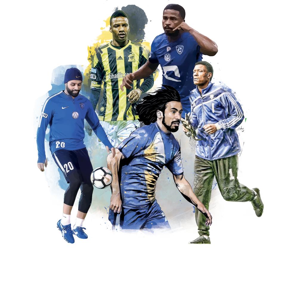 تضمنت التشكيلة 5 لاعبين هلاليين تضمنت مسيرتهم موسما أو أكثر خارج أسواره، أبرزهم أسامة هوساوي (4 ألقاب مع الهلال و1 مع الأهلي)، ويحتفظ برقم تاريخي هو أنه كلما يفوز باللقب يكون دفاعه الأقوى في البطولة، وتواجد أحمد الدوخي كظهير أيمن والذي امتاز بأدواره دفاعيا وهجوميا، وأثار جدلا هائلا بانتقاله من الهلال إلى الاتحاد عام 2005، قبل أن ينهي مسيرته في النصر، وفي محور الوسط تواجد الراحل خميس العويران الذي تحول من صفوف الهلال للاتحاد عام 2001 وحقق معهما نجاحات كبيرة.