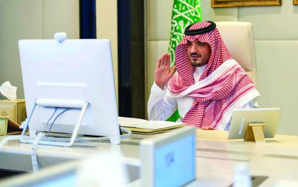 التقى وزير الداخلية الأمير عبد العزيز بن سعود بن نايف، كبار مسؤولي وزارة الداخلية وقادة القطاعات الأمنية، وذلك عبر تقنية الاتصال المرئي. ونقل في بداية اللقاء تهنئة خادم الحرمين، وولي العهد، لمنسوبي وزارة الداخلية والقطاعات الأمنية بمناسبة عيد الفطر المبارك، وتقديرهما للجهود التي يبذلونها للمحافظة على الأمن والسلامة، وتنفيذ واجباتهم في مواجهة جائحة كورونا.