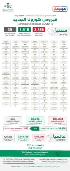 كما بلغ عدد الوفيات 932 حالات، بإضافة 39 حالة وفاة جديدة.