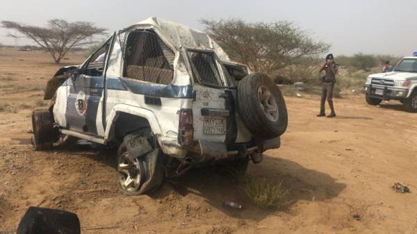 وأكد المتحدث الرسمي باسم الهلال الأحمر السعودي في جازان بيشي الصرخي، أن غرفة عمليات الهلال الأحمر بالمنطقة، تلقت بلاغا على الرقم «997»، أمس، عن حادث انقلاب مركبة أمنية على طريق الحقو التابع لمحافظة بيش، وتم توجيه فرقتين إسعافيتين بإشراف القيادي الميداني المناوب مازن مطوع، وعند وصولهما إلى الموقع تبين وجود حالتين، وعند الكشف الطبي عليهما من المسعفين، تبين وفاتهما، وتم نقلهما عن طريق الفرق إلى مستشفى بيش العام، لإيداعهما ثلاجة الموتى.