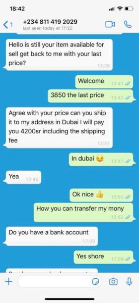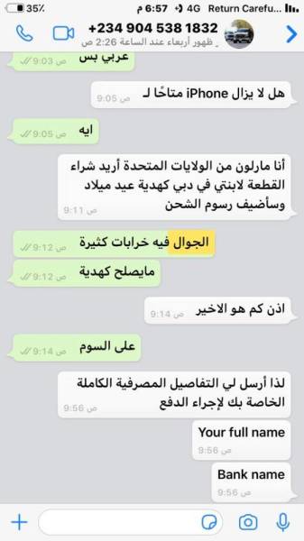 تواصل المستهلك بالبائع عن طريق الواتس آب، وطلب شراء المنتج منه