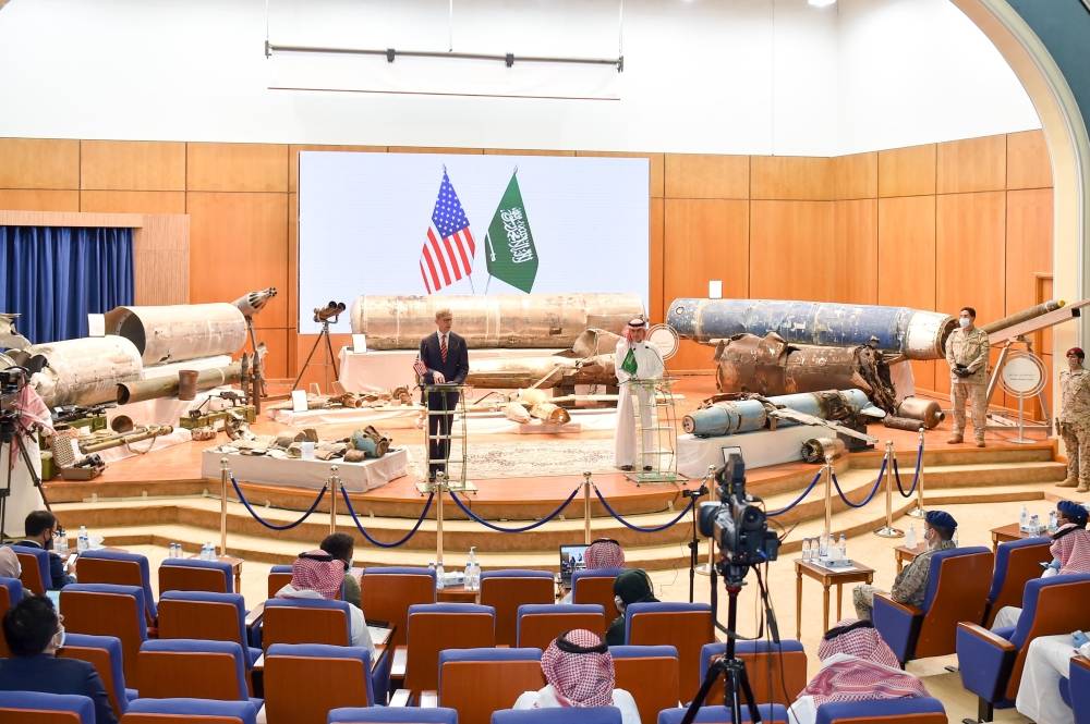 وأضاف: منذ بداية الحرب في اليمن قامت الميلشيا الحوثية بـ 1659 هجومًا على المدنيين في المملكة، وأطلقت الميليشيا 318 صاروخًا باليستيا إيراني الصنع والمنشأ على مدن وقرى المملكة، فالميليشيا الحوثية أطلقت منذ بداية الحرب في اليمن 371 طائرة مسيرة على المملكة و64 سفينة مسيرة مفخخة لعرقلة حرية الملاحة في باب المندب والبحر الأحمر، وأشار أيضا إلى أن المملكة صادرت يوم الأحد الماضي شحنة أسلحة حاولت إيران تقديمها للميليشيا الحوثية.