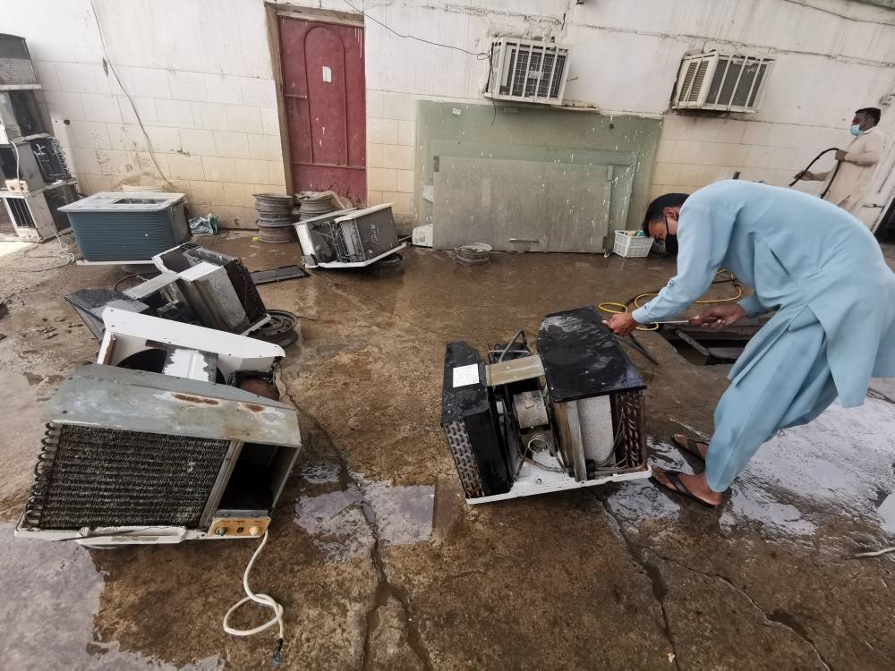 أنعش موسم الغبرة الموسمية وارتفاع درجة حرارة الأجواء في فصل الصيف بمحافظة الدرب شمال منطقة جازان، ورش صيانة وغسيل المكيفات حيث تبدأ الأسعار من 25 إلى 30 ريالا. (تصوير: محمد الحسين)