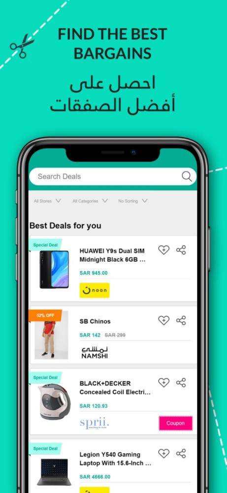 - وفّر أكثر: تصنيف أو ترتيب عروض الخصم وفقًا لنسبة الخصم. ستتمكّن دائمًا من اكتشاف واستعراض أقوى الخصومات.