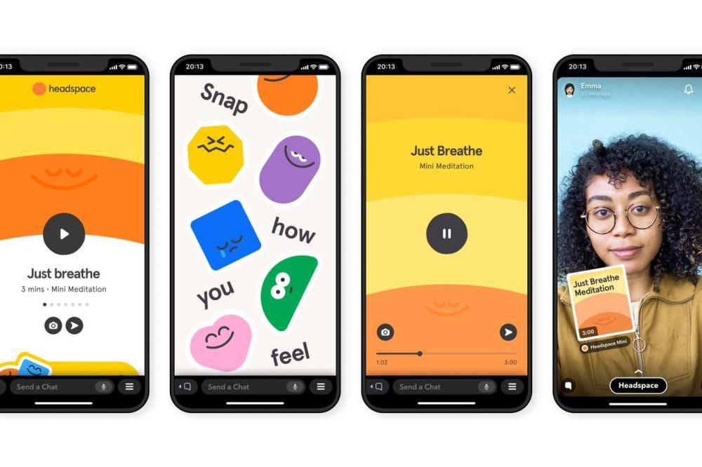 أطلقت منصة Snapchat أول تطبيق صغير جديد، بحيث يستخدم أدوات من تطبيق التأمل التابع لشركة الرعاية الصحية عبر الإنترنت المتخصصة في التأمل (Headspace). ويسمح التطبيق المصغر للأصدقاء بمشاركة جلسات التأمل معًا، ويأتي كجزء من مبادرة للمساعدة في دعم الصحة العقلية والرفاهية العاطفية لمستخدمي Snapchat. ويُعد تطبيق التأمل المصغر الجديد واحدًا من أربعة تطبيقات مصغرة من المفترض إطلاقها هذا الأسبوع، وتشمل التطبيقات الأخرى (Let’s Do It)، الذي يتيح للمجموعات اتخاذ القرارات معًا. وهناك أيضًا تطبيق (Prediction Master)، الذي يقدم أسئلة حول كل شيء من سوق الأسهم إلى الأحذية الرياضية، بالإضافة إلى تطبيق البطاقات التعليمية (Flashcards) لتقديم مساعدة دراسية. ويحتوي تطبيق التأمل المصغر على ست جلسات تأمل، تتراوح مدتها من ثلاث دقائق إلى أربع، وتتضمن موضوعات، مثل: "Just Breathe" و"Me Time".