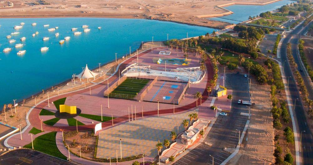 تشكل الواجهة البحرية بمدينة ينبع الصناعية نقطة جذب للآلاف من الزوار والمتنزهين لموسم صيف السعودية «تنفس»، ومن أبرز معالم الواجهة البحرية المسرح المفتوح ذو الأعمدة - الذي استُوحيت فكرته من الحضارة الرومانية - والمدرجات الدائرية، حيث استُفيد من الحجر البحري الخام المستخرج من البحر الأحمر، وروعي في تصميمه طابع العمارة الإسلامية.