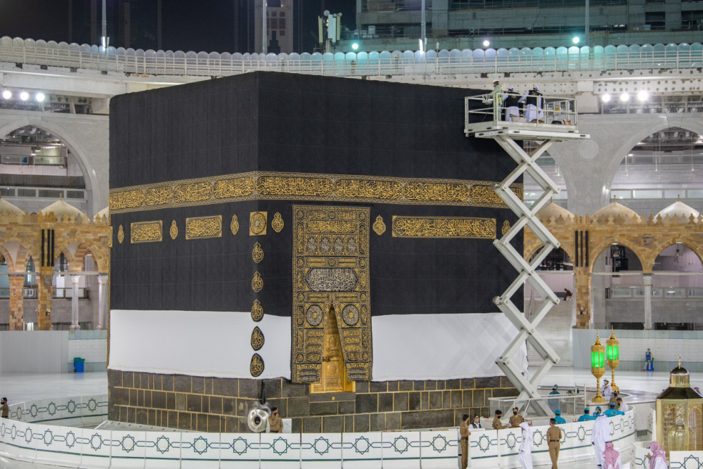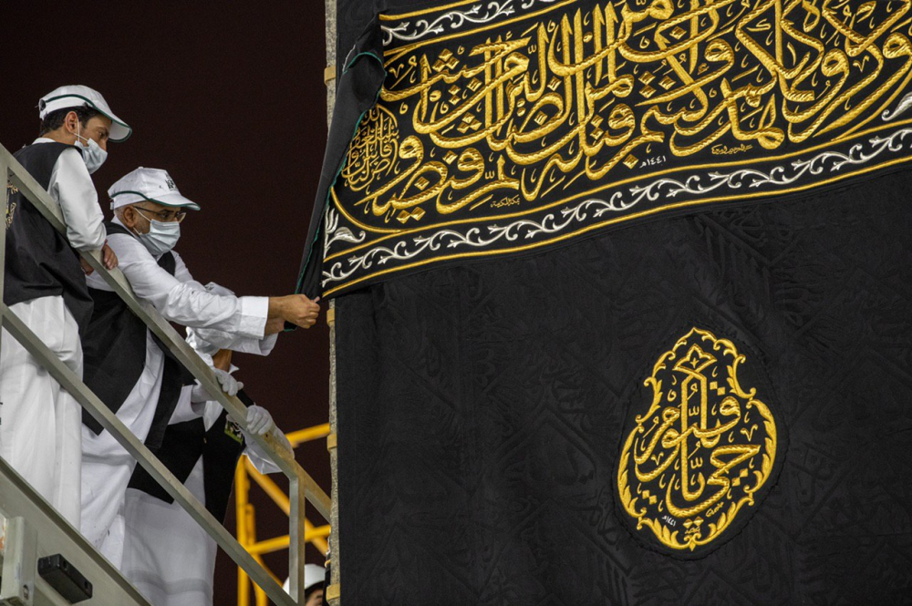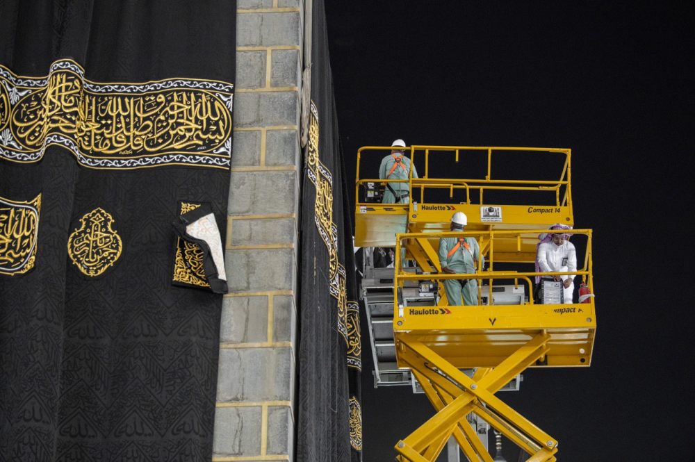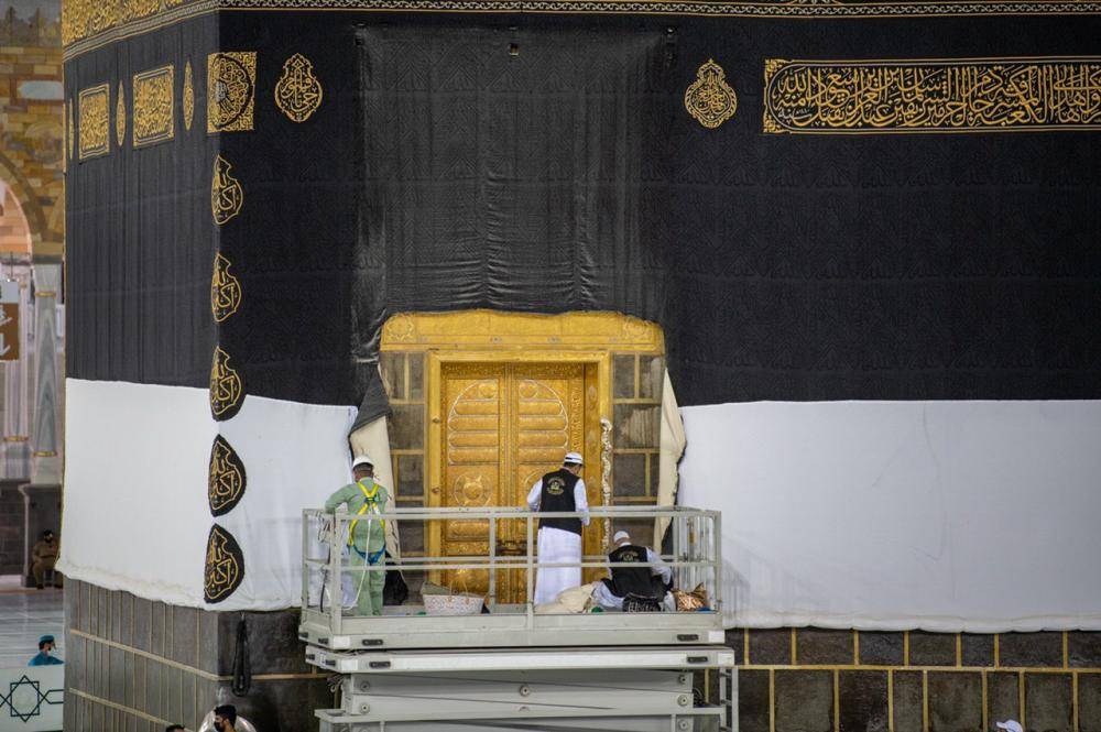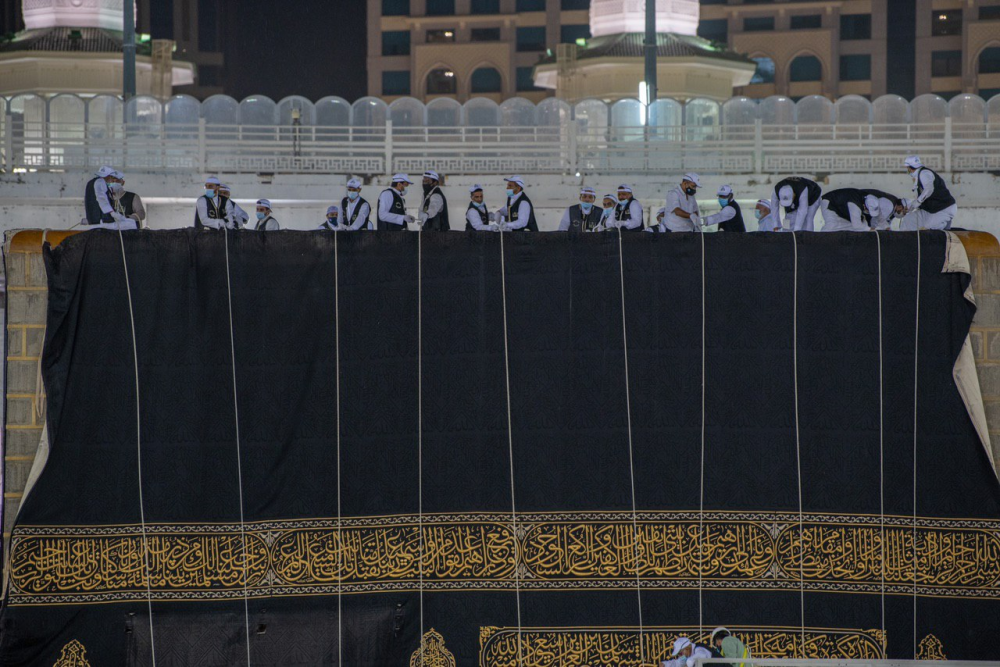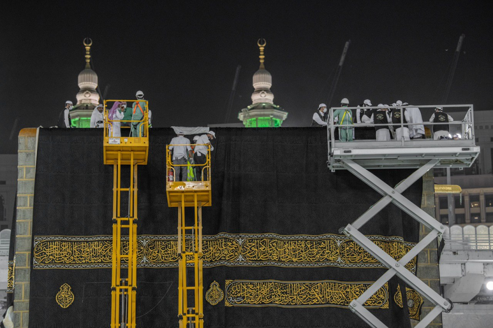 وأفاد وكيل الرئيس العام لشؤون المسجد الحرام أحمد بن محمد المنصوري أنه "تم تركيب الكسوة الجديدة والمكونة من أربعة جوانب مفرقة وستارة الباب، حيث تم رفع كل جنب من جوانب الكعبة الأربعة على حدة إلى أعلى الكعبة المشرفة؛ تمهيداً لفردها على الجنب القديم، وتم تثبيت الجنب من أعلى بربطها وإسقاط الطرف الآخر من الجنب، بعد أن تم حلّ حبال الجنب القديم، بتحريك الجنب الجديد إلى أعلى وأسفل في حركة دائمة، بعدها سقط الجنب القديم من أسفل وبقي الجنب الجديد، وتكررت العملية أربع مرات لكل جانب إلى أن اكتمل الثوب، ثم بعدها تم وزن الحزام على خط مستقيم للجهات الأربع بخياطته. وأضاف: "بدأت هذه العملية أولاً من جهة الحطيم، لوجود الميزاب الذي له فتحة خاصة به بأعلى الثوب، وبعد أن تم تثبيت كل الجوانب تثبت الأركان بحياكتها من أعلى الثوب إلى أسفله، وبعد الانتهاء من ذلك تم وضع الستارة التي احتاجت إلى وقت وإتقان في العمل، وذلك بعمل فتحة تقدر بمساحة الستارة في القماش الأسود والتي تقدر بنحو 3.30 أمتار عرضاً حتى نهاية الثوب، ومن ثم تم عمل ثلاث فتحات في القماش الأسود لتثبيت الستارة من تحت القماش، وأخيرًا تم تثبيت الأطراف بحياكتها في القماش الأسود على الثوب".