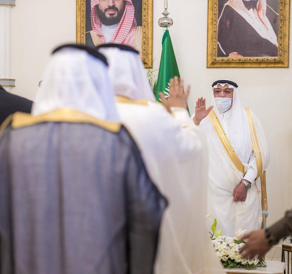 حضر الاستقبال الأمير سعود بن فيصل بن مشعل، والأمير سلطان بن فيصل بن مشعل، والأمير تركي بن فيصل بن مشعل، والأمير فيصل بن سعود بن فيصل بن مشعل، والأمير تركي بن فهد بن تركي بن فيصل بن تركي، ووكيل إمارة المنطقة الدكتور عبدالرحمن الوزان، ووكيل إمارة المنطقة للشؤون التنموية عبدالرحمن السعوي، ومدير شرطة المنطقة اللواء علي بن حسن بن مرضي، وعدد من أصحاب الفضيلة المشايخ والقيادات الأمنية ومديري الجهات الحكومية في المنطقة.