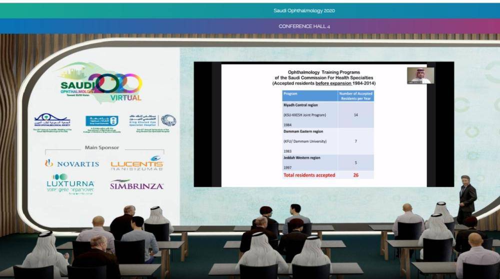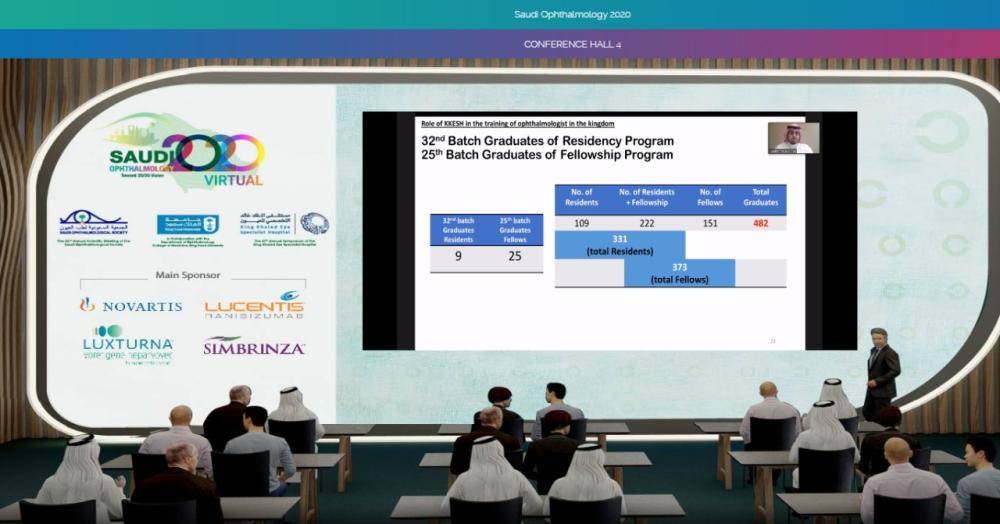 الاخوة والاخوات أعضاء الجمعية السعودية لطب العيون - الأطباءوالطبيبات وأخصائيي وأخصائيات البصريات، الضيوف الكرام السلام عليكم ورحمة الله وبركاته.. أرحب بكم جميعًا في هذا اللقاء العلمي الافتراضي الهام باجتماع طب العيون السعودي2020 ، ويسرني أنيواكب هذا الاجتماع كلًا من (الاجتماع العلمي السنوي الـ 32 للجمعية السعودية لطب العيون)، و(الـندوة الـ 37 لمستشفى الملك خالدالتخصصي للعيون)، بمشاركة قسم طب العيون بكلية الطب بجامعة الملك سعود، مع نخبة من الأساتذة الأطباء والطبيبات من الجامعات والمستشفيات السعودية ومن الدول الشقيقة والصديقة. الذي يستضيف (13) من الأساتذة الأطباء الزائرين من مختلف دول العالم، وهذه الجهود العلمية ضمن رؤية المملكة 2030 .