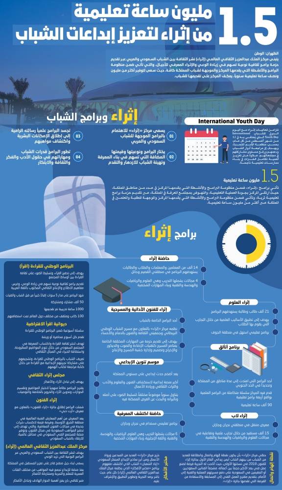 - يسعى مركز "إثراء" للاهتمام بالبرامج الموجهة للشباب السعودي والعربي