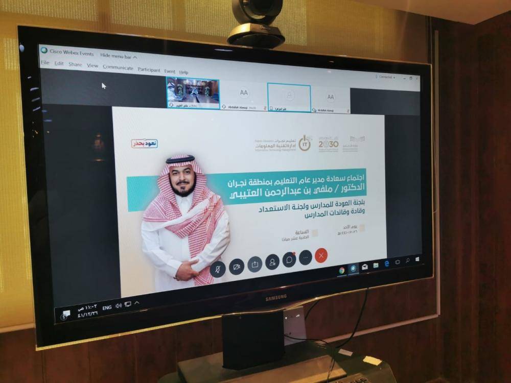 بحث مدير عام التعليم بمنطقة نجران ملفي العتيبي مع لجنة العودة للمدارس ولجنة الاستعداد وقادة المدارس بدء العام الدارسي، وعودة الطلاب لمدارسهم، من خلال الوسائل البديلة، واستغلال كافة الإمكانيات التي أتاحتها وزارة التعليم من خلال قناة عين التعليمية الفضائية، ومنصة مدرستي للتعليم عن بُعد، ، ومشددا على قادة المدارس بضرورة توفير جميع الاحتياجات الطلابية، وضرورة تفعيل جميع البرامج البديلة، ومضاعفة الجهود التعليمية لإيصال الرسالة العلمية، وتذليل كافة الصعوبات التي قد تواجه الطلبة بالشراكة مع أولياء الأمور، وأضاف العتيبي بعد التنسيق مع الشؤون الصحية بمنطقة نجران أنه ستكون هناك دورات مخصصة موجهة للمرشدين الصحيين بالمدارس، يتم من خلالها تثقيف وتوعية الطلاب والطلبة بطرق التصدي لجائحة كورونا.