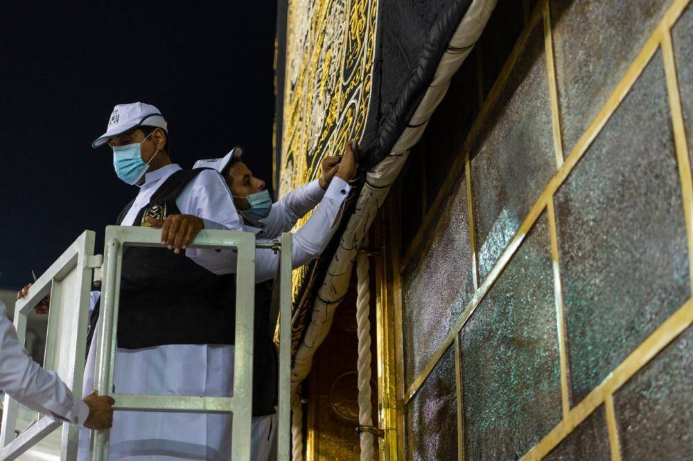 وأوضح أنه وفقاً للخطة التشغيلية والفنية لإسدال ثوب الكعبة المشرفة باشر الفريق المعني بالمهمة تركيب الحلقات المثبتة ليتم إسدال الجزء الذي تم رفعه من الثوب خلال موسم الحج لعام 1441، مشيرا إلى أن رفع أجزاء من الثوب بمقدار 3 أمتار تقريباً في منتصف ذي القعدة كان من باب الاحتراز والحفاظ على نظافة وسلامة كسوة الكعبة المشرفة ومنع العبث بها.