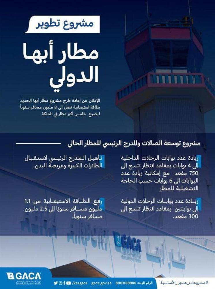 وكشفت المصادر أنه تمت زيادة مواقف الطائرات، وإضافة ساحة وقوف طيران رقم (2)، لتعزز من قدرات المطار الذي شهد في فترة سابقة توسعة شملت صالات المسافرين، ودورات المياه، وقدرات التشغيل كذلك.