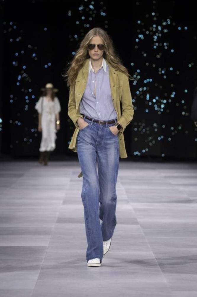 ولم تنحصر موضة الجينز في البناطيل أو التنانير أو الجاكيتات والقمصان التقليدية بل قدمت أشهر الدور العالمية فساتين أنيقة بقصات أنثوية من وحي أزياء الخمسينات من الجينز تألقت بها عارضات الأزياء، وهي تنسق مع «شال» بزخارف ملونة.