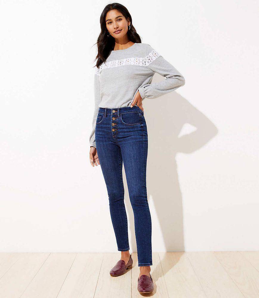 وتتعدد أنواع الجينز ما بين ارتداء جينز أبيض كونه يظهر رشاقة الجسد، والجينز اللاصق (الإسكيني) السادة (أزرق داكن أو أسود)، ويظهر طول ونحف الساق، وعاد البنطلون «الشارلستون» وهو الواسع القصة، بلون أزرق داكن أو فاتح بعد أن اختفى لبضع سنوات، والجينز بحزام حول الخصر الذي يناسب بعض الأذواق، والجينز بالأرجل البالوني ليمنح المرأة مظهرا رشيقا، والجينز ذو الخصر العالي والأرجل المستقيمة، والجينز بخيوط حياكة أمامية، ليمنح المرأة إطلالة جذابة تعكس تفرد أسلوبها، والجينز الرمادي الذي يتناغم مع عدد من الألوان كالأسود والأبيض والبيج والأزرق، والجينز على هيئة شورتات طويلة أو بنطلونات بنمط البرمودا أو بنطلون واسع الساق مع أحذية الكاحل أو الصنادل المكشوف