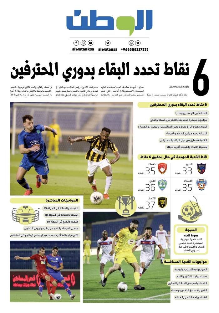 6 نقاط تحدد البقاء بدوري المحترفين