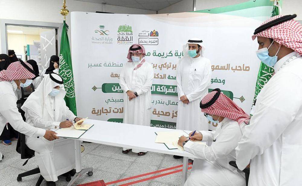 وشهد أمير منطقة عسير ووزير الصحة توقيع اتفاقية للشراكة المجتمعية بين صحة عسير ورجل الأعمال بندر بن إبراهيم الصبيخي، بهدف تخصيص مراكز صحية داخل المجمعات التجارية في أبها وخميس مشيط ومحايل عسير، وتكريم الدكتور مهند حلواني نظير ابتكاره "مقبضا طبيا يستخدم في جراحة الأسنان"، خلال فترة عمله بصحة عسير.