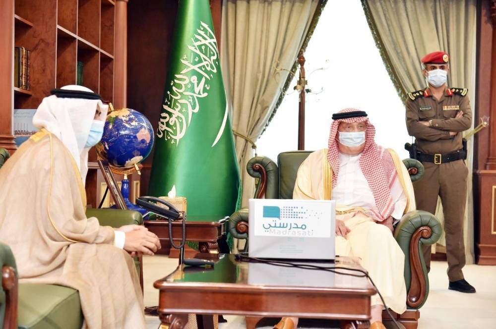 وتضمن العرض فيديو تعريفيا عن منصة مدرستي، بدايتها وأهدافها، وشاهد أمير المنطقة بثا مباشرا لأحد الدروس عبر منصة مدرستي، مشاركا أبناءه المعلمين والطلاب في أحد الفصول الافتراضية عن بعد، واستمع الجميع لتوجيهاته.