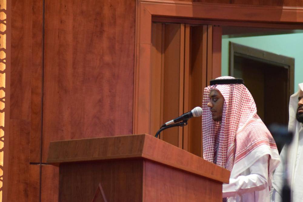 و قدم كلمة مجلس إدارة الجمعية بالنيابة عنهم الاستاذ علي حكمي والتي رحب بالضيوف الكرام و أشاد بجهود الجمعية في المسابقة و أهمية القران الكريم و فضله و ختم كلامه بالشكر لكل من له فضل في نجاح هذه المسابقة من إدارة و عاملين بالجمعية . و أنشدت الطفلتين مي و رحاب وصليتين إنشاديتين ، فيما ذكر الاستاذ ياسر سهلي من خلال كلمة المستفيدين جهود الجمعية و ما تقدمه من برامج اجتماعية و ترفيهية و مسابقات للمستفيدين و شكر كل القائمين على تلك البرامج .