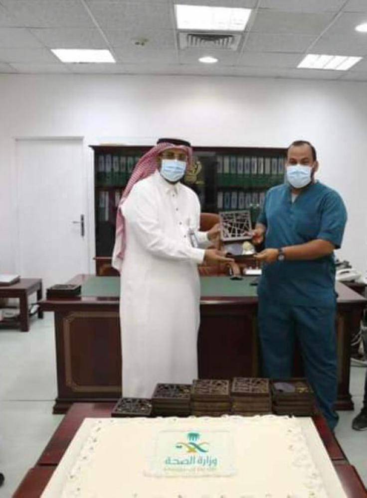 كرم مدير مستشفى النور التخصصي بمكة المكرمة الدكتور وائل بن حسين الميمني أمين عهدة الملزمة الطبية والمسؤول الأول عن بنود كورونا بالمستشفى أحمد عبدالله المنياوي على جهوده الكبيرة التي بذلها طوال أزمة كورونا.