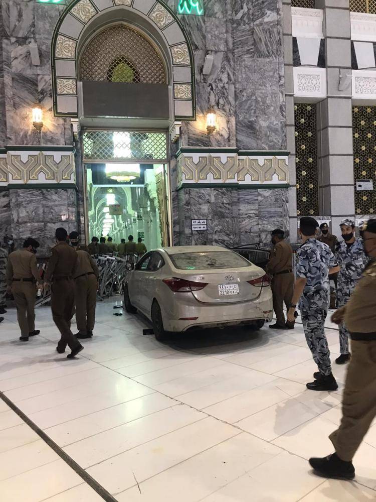 وأبانت المصادر أن قائد المركبة كان في حالة غير طبيعية وتم القبض عليه مباشرة من قبل القوة الخاصة بأمن الحرم وتثبيت الواقعة وسحب مركبته لحجز السيارات بالعاصة المقدسة، مع استمرار المصلين والمعتمرين أداء عباداتهم وأعمالهم دون أي توقف أو تأخر في أعمالهم المرتبطة بزمن محدد عبر تطبيق اعتمرنا. من جهتها، أكدت إمارة منطقة مكة المكرمة في بيان لها، بأنه في تمام الساعة العاشرة والنصف من مساء يوم الجمعة الموافق 13-3-1442هـ باشرت الجهات الأمنية بالعاصمة المقدسة حادثة ارتطام سيارة بأحد أبواب المسجد الحرام نتيجة انحرافها أثناء سيرها بسرعة عالية في أحد الطرق المحيطة بالساحة الجنوبية بالمسجد الحرام،وبفضل الله لم يصب أي شخص بأذى، واتضح أن الشخص بعد القبض عليه أنه مواطن وبحالة غير طبيعية وجارٍ إحالته للنيابة العامة.