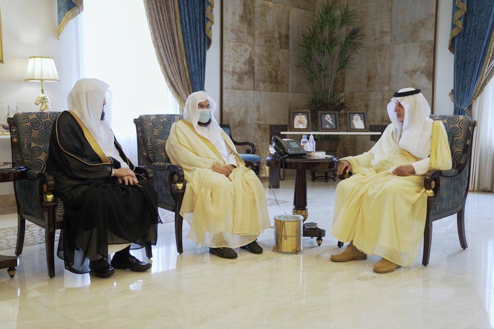 استقبل أمير منطقة مكة المكرمة، الأمير خالد الفيصل، في مقر الإمارة بجدة، الرئيس العام لشؤون المسجد الحرام والمسجد النبوي، الدكتور عبدالرحمن السديس، يرافقه الشيخ الدكتور بندر بليلة، عضو هيئة كبار العلماء وإمام وخطيب المسجد الحرام. واستمع الأمير خالد الفيصل إلى شرح عن خطة رئاسة الحرمين في المسجد الحرام المتزامنة مع المرحلة الثالثة للإعادة التدريجية للعمرة، والهادفة لرفع الطاقة الاستيعابية إلى 20 ألف معتمر يوميا و60 ألف مصلّ.