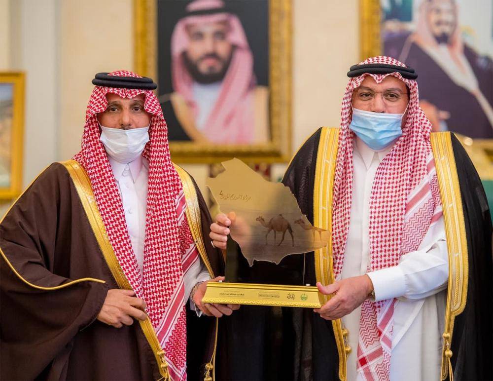 استقبل أمير منطقة القصيم الأمير الدكتور فيصل بن مشعل، رئيس مركز مدرج شلاح بن عبدالله بن مضيان، وأعضاء اللجان المشاركة، والمنظمة من الجهات الحكومية والأهلية، لمزاد الابل في مدرج، الذين قدموا للسلام عليه بمناسبة انتهاء المزاد. وبين رئيس مركز مدرج، أن اللجان أكملت استعداداتها بكافة الخدمات، والتجهيزات التي يحتاجها مالك الإبل والزوار، بموقع المزاد بالتعاون مع بلدية محافظة شري، منوهاً بما صاحب المزاد من نشاط اقتصادي في البيع والشراء. بعد ذلك تسلم أمير منطقة القصيم، درع شكر وتقدير من رئيس مركز مدرج، بمناسبة نجاح مزاد الإبل، الذي تم الإشراف عليه من قبل عدة جهات حكومية.