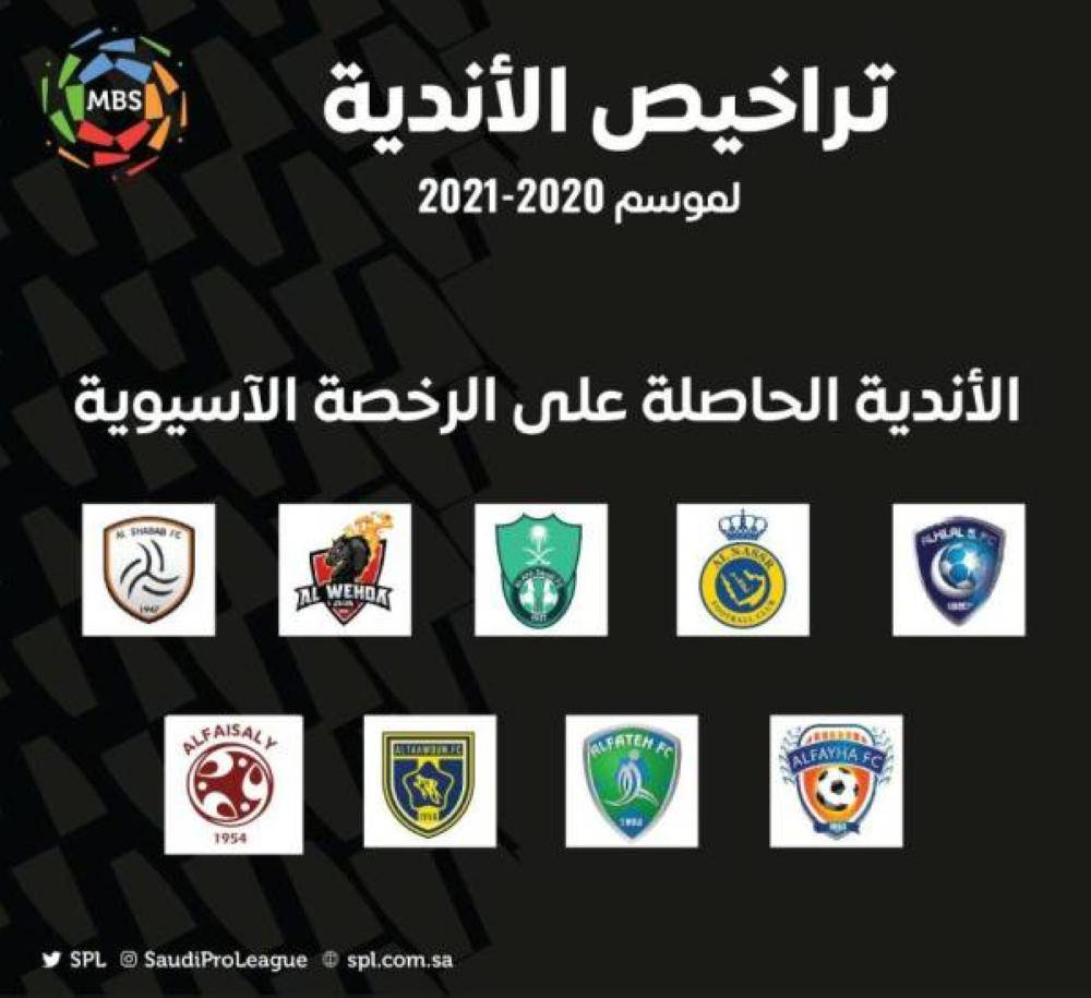 كما قررت اللجنة عدم منح أندية (الرائد، والاتفاق، وأبها، وضمك، والاتحاد، والحزم، والعدالة) الرخصة الآسيوية للموسم الرياضي 2020 - 2021، وذلك لعدم استيفائهم عددًا من المعايير الإلزامية المنصوص عليها في لائحة تراخيص الأندية.