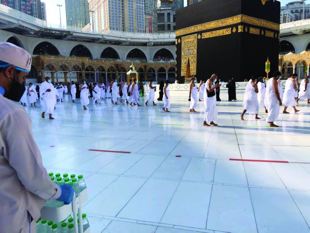 معتمرون يؤدون مناسكهم وشعائرهم، في الحرم المكي وسط أجواء روحانية، وإجراءات احترازية، وفرتها المملكة لضيوف الرحمن. (تصوير: عبدالإله بن عبيد)