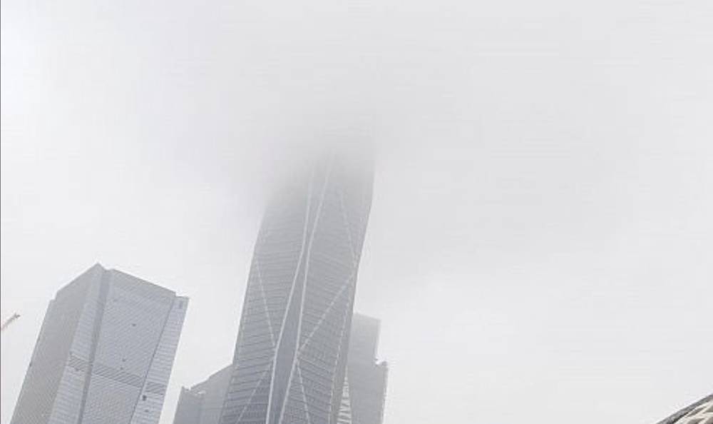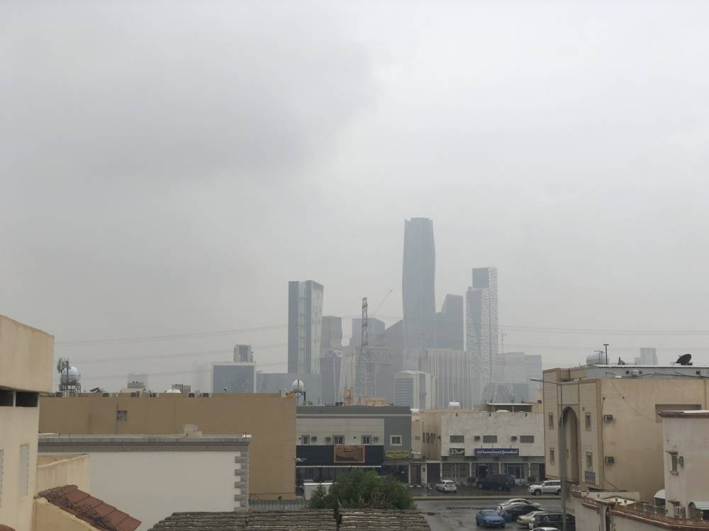 أجواء ربيعية شهدتها الرياض أمس، بتساقط أمطار متوسطة غسلت الشوارع، بينما غطت الغيوم والضباب سماء وأبراج العاصمة (تصوير: سليمان العنزي)