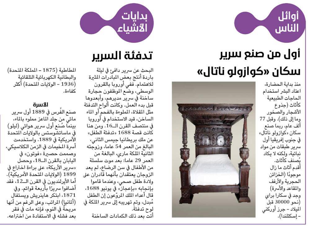 أما الأيرلنديون في القرن الـ12، فقد أضافوا سريرًا بأربعة قوائم. وفي 1871، ابتكر هاينريش ويستفال (ألمانيا) المراتب، وعلى الرغم من أنها مريحةٌ في النوم، فإنه مات في فقر بعد فشله في الاستفادة من اختراعه.