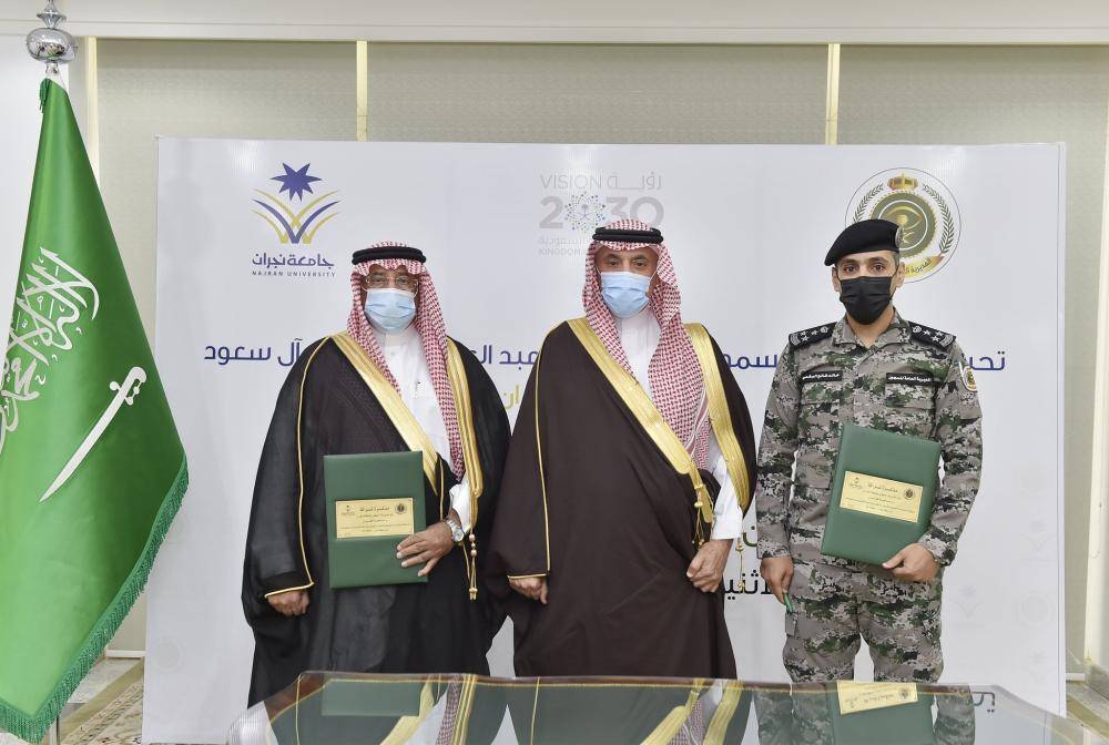 وشهد أمير منطقة نجران توقيع مذكرة تعاون بين الجامعة وسجون المنطقة، وذلك لتطوير وتنفيذ أعمال مشتركة بينهما في مجال خدمة السجناء، وتشتمل المذكرة على تنفيذ دورات تدريبية في الحاسب الآلي واللغة الإنجليزية والمهارات الشخصية، إضافةً إلى التنسيق والتعاون في مجال البحوث وعقد المؤتمرات وورش العمل وتقديم الخِدْمات الاستشارية وعمل محاضرات للنزلاء المنتسبين في الجامعة قبل الامتحانات بعدة أشهر، وتقديم الدعم الفني للسجون وتقديم محاضرات وندوات توجيهية تعالج الانحراف السلوكي والفكري، ومدة الاتفاقية سنتان تبدأ منذ توقيعها.
