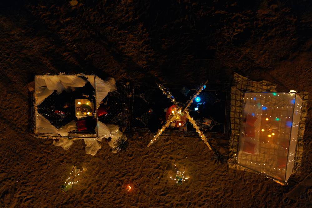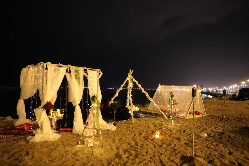 تنافس جلسات خاصة من ابتكار فتيات في منطقة جازان المخيمات البحرية، وسط تسابق العائلات والشباب على الكورنيش للحجز. (تصوير: يحيى مدخلي)
