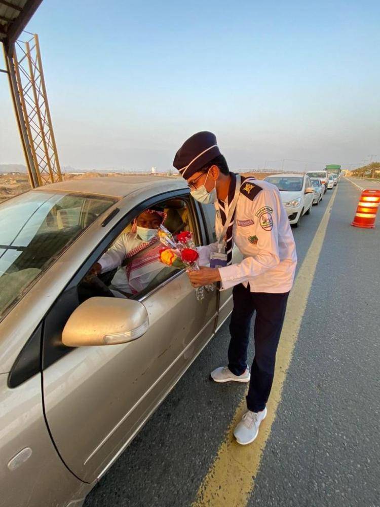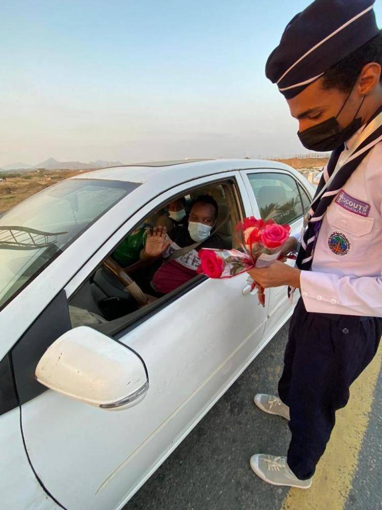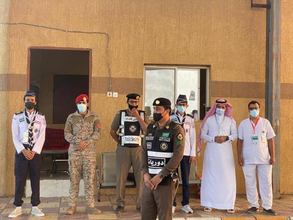 ساهم رجال الأمن وكشافة لجنة التنمية الاجتماعية وصحة محافظة الحرث في نشر ثقافة أخذ لقاح كورونا، وذلك من خلال توزيع الملصقات الخاصة لتوعية المارة حول أهمية أخذ اللقاح للوقاية من كوفيد-19. وساهم فريق العمل في توزيع باركود تطبيق صحتي على قائدي المركبات في مدخل المحافظة.