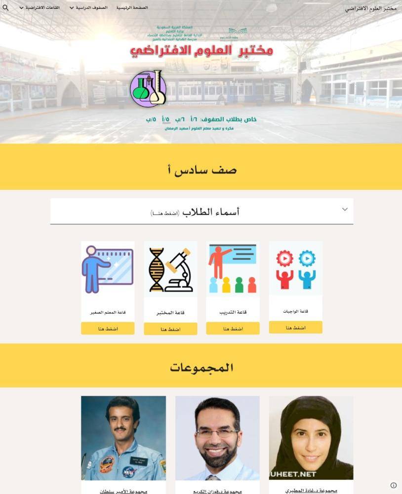 وأوضح الرمضان، أنه جرى تقسيم الطلاب في المختبر إلى مجموعات تحمل أسماء علماء مسلمين وسعوديين وعالميين حتى تُغرس في عقول النشء محبة العلم، وانتهاج نهج هؤلاء العلماء المؤثرين، ويحتوي على عدة حوائط (افتراضية) لعرض الأعمال والتجارب الطلابية المميزة، كما يحتوي المختبر على 5 قاعات، إضافية، وهي:
