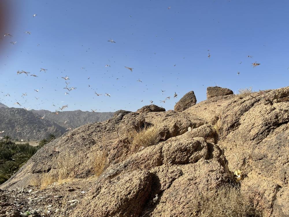 وغزت أسراب الجراد الصحراوي قرى زور وادعة بنجران أمس، مما ألحق الضرر بالمحاصيل الزراعية وسط مطالبات المواطنين بتكثيف المكافحة في جميع الأحياء التي يتواجد فيها الجراد.