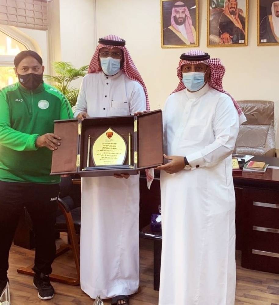 كرم رئيس فريق بركان عتود علي سارح عتودي رئيس الرابطة الفرعية لفرق الأحياء بمنطقة جازان سلطان عواجي بحضور مدير عام وزارة الرياضة بمنطقة جازان إبراهيم الرياني.