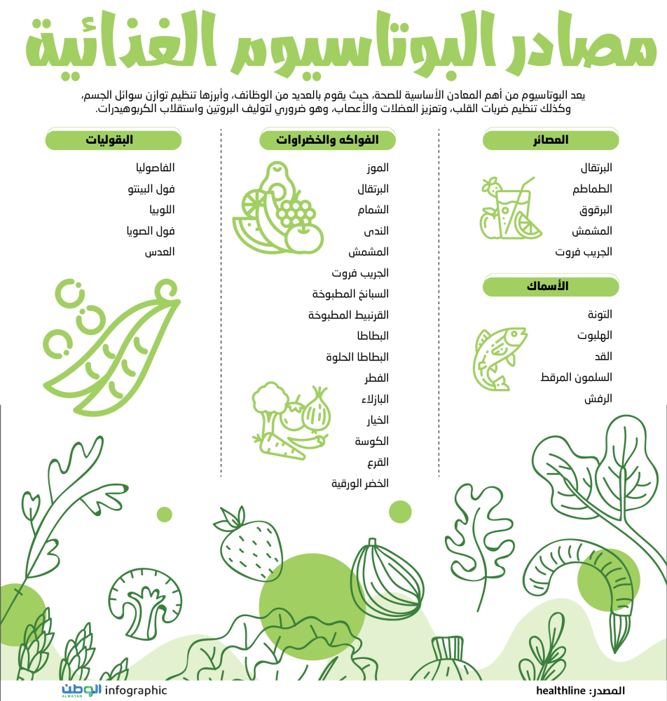 مصادر البوتاسيوم الغذائية