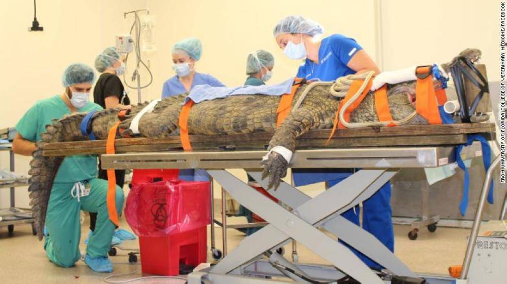 اضطر تمساح نيلي اسمه «أنوكيت» للخضوع لعملية جراحية في فلوريدا مؤخرًا، وقال موقع تليفزيون «سي إن إن نيوز» إن المشكلة بدأت في ديسمبر عندما انزلق حذاء من قدم سائح فوق بيت التمساح في حديقة حيوان سانت أوجستين أليجاتور فارم، فقام أنوكيت الذي يعيش مع تمساح آخر، بابتلاع الحذاء.