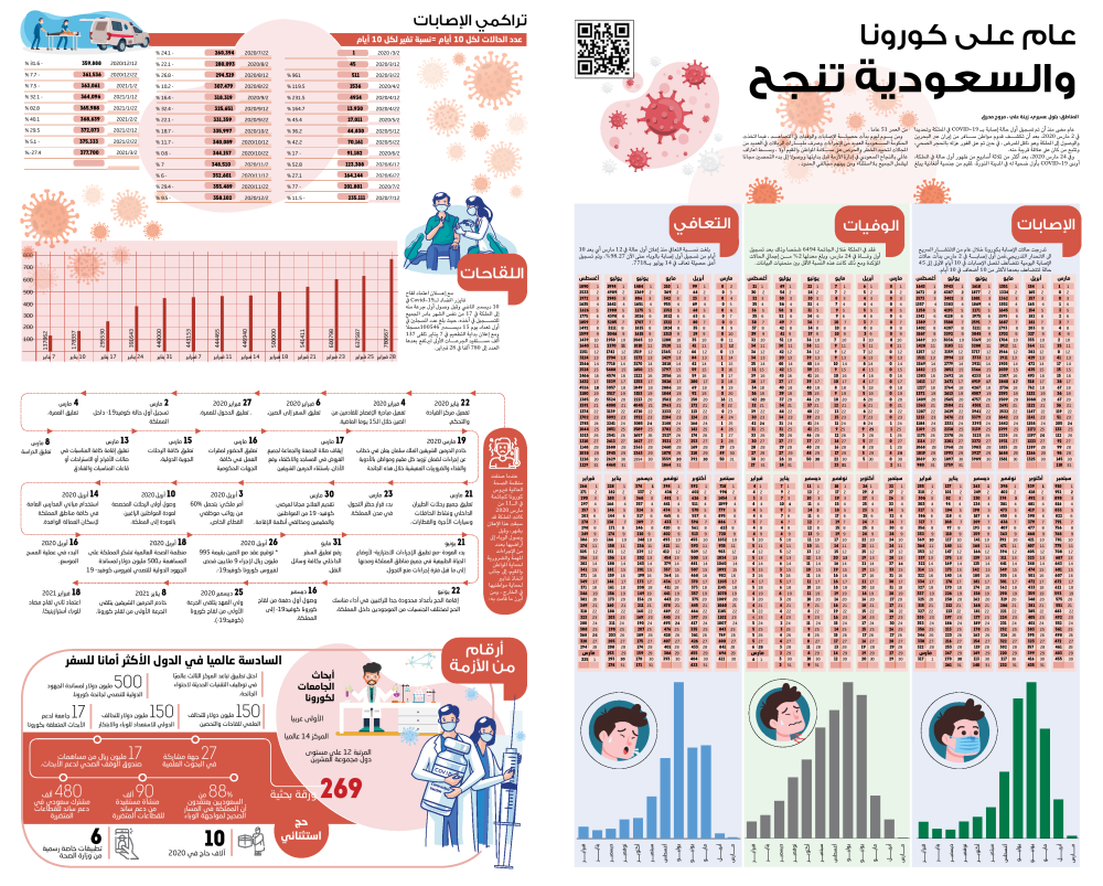 ومن يوم ليوم بدأت حصيلة الإصابات والوفيات في التصاعد ، فيما اتخذت الحكومة السعودية العديد من الإجراءات وصرف مليارات الريالات في العديد من المجالات لتحييد الخطر والحرص على سلامة المواطن والمقيم أولا ، وسط اعتراف عالمي بالنجاح السعودي في إدارة الأزمة قبل بدايتها ووصولا إلى بدء التحصين مجانا ليشمل الجميع بلااستثناء ومن بينهم مخالفي الحدود .