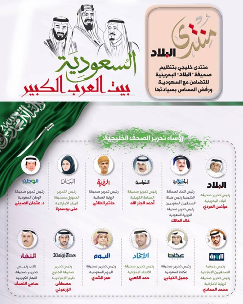 يهدف المنتدى إلى إعلاء الصوت الخليجي الشعبي للتضامن مع المملكة العربية السعودية استنكارا لما تتعرض له المملكة العربية السعودية من حملة معادية تمس سيادتها بعد التقرير الأمريكي المجافي للحقيقة من وكالة الاستخبارات الأمريكية، والذي خلا من أي معطيات أو أدلة أو براهين تذكر. ويحمل المنتدى عنوان «السعودية.. بيت العرب الكبير». ومن المقرر بث وقائع المنتدى عبر قناة «البلاد» على «اليوتيوب» ومنصة «زووم» وحساب الصحيفة بـ«الانستغرام لايف».