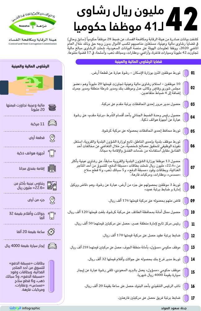 42 مليون ريال رشاوي لـ41 موظفا حكوميا