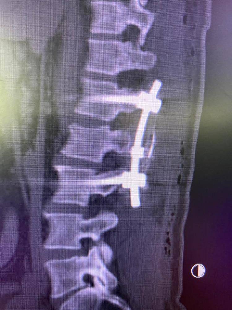 وفي حالة أخرى لمقيم في العقد الرابع كان يعاني من كسر في الفقرة الثانية عشرة الصدرية ضاغط على الحبل الشوكي والقناة الفقرية، قرر الفريق الطبي إجراء عملية تثبيت الفقرات من العاشرة الصدرية وحتى الثانية القطنية مع إزالة الضغط على القناة الفقرية الثانية عشرة. حيث تكللت جميع العمليات بالنجاح.